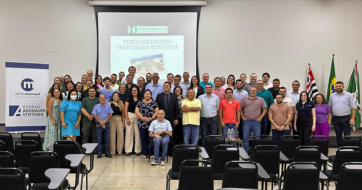 No dia 23 de abril, cerca de 50 servidores municipais participaram de um encontro presencial promovido pela Oficina Municipal com apoio da Fundação Konrad Adenauer (KAS-Brasil). Realizado no auditório do IMESB, em Bebedouro (SP), o evento integrou o programa de capacitação da Câmara Técnica Tributária do CODEVAR (Consórcio de Desenvolvimento do Vale do Rio Grande, que reúne 38 prefeituras da região) , com foco na cooperação regional como estratégia para aprimorar a eficiência tributária local.