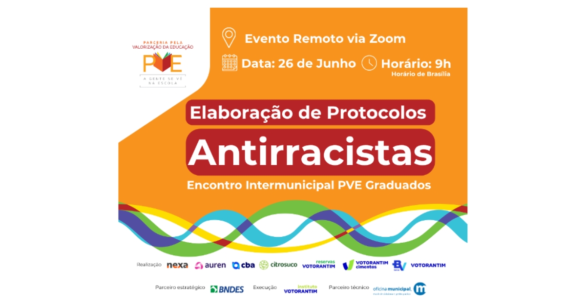 Encerrando o segundo ciclo do programa PVE Graduados, a Oficina Municipal promoveu, em 26 de junho, o encontro virtual “Elaboração de Protocolos Antirracistas”, com mais de 250 participantes de todo o país.